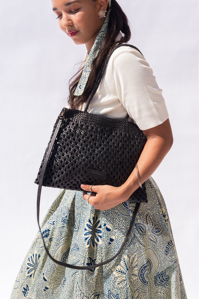Margaux è una borsa in pelle traforata e intrecciata realizzata a mano in morbida nappa.
