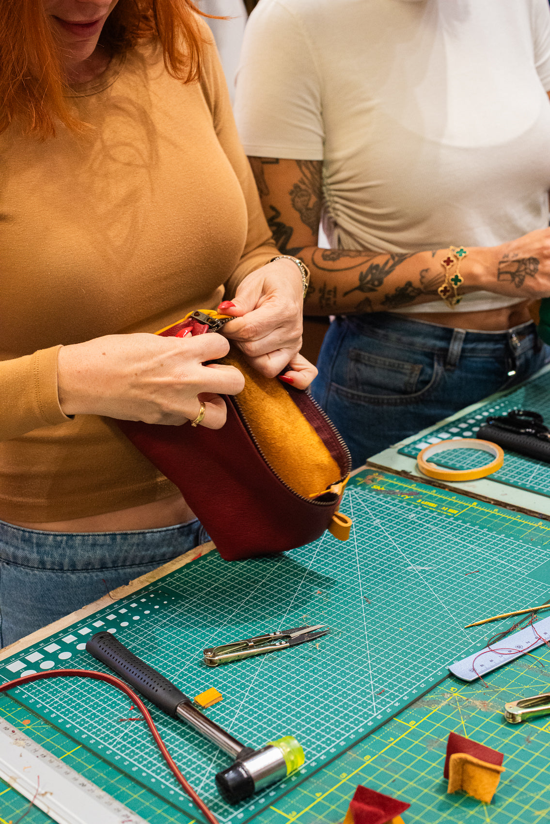 The Create Your Own Clutch workshop is a craft course that aims to teach participants how to make a leather clutch.