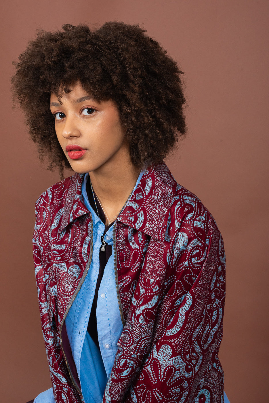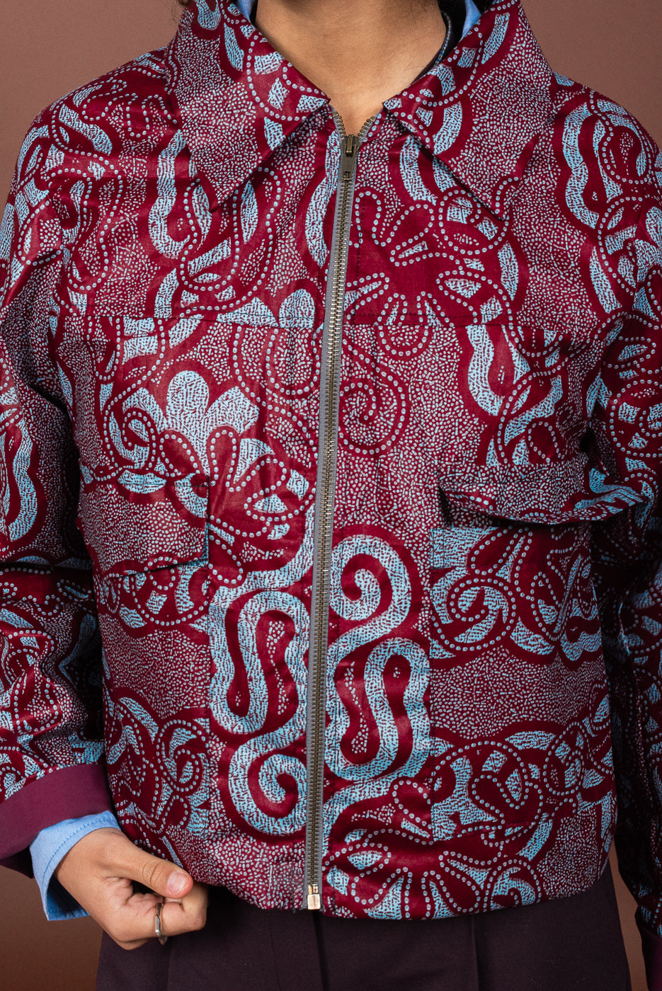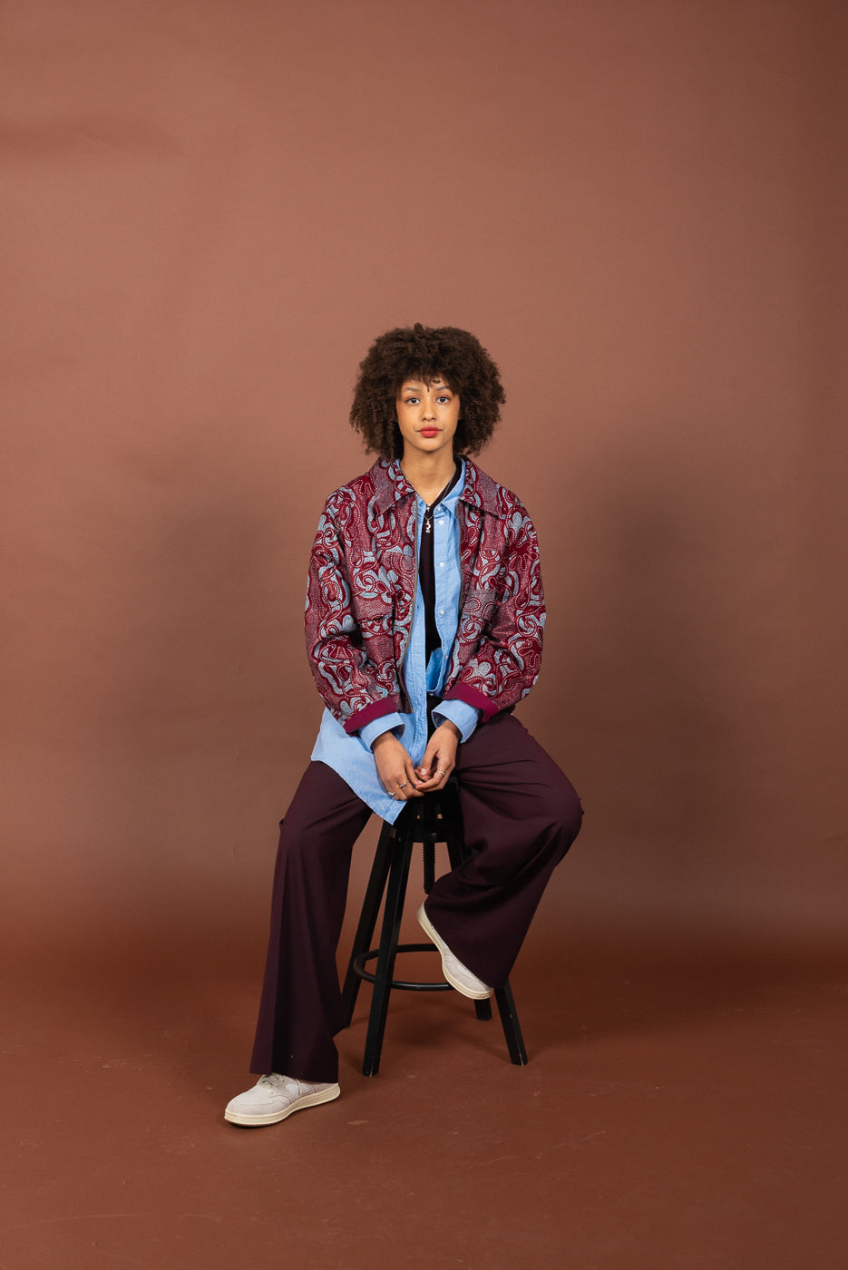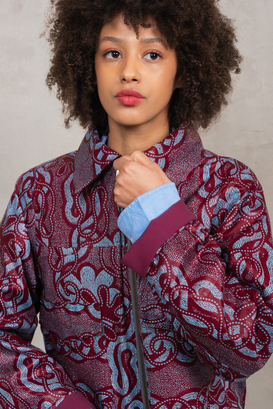 Le stoffe Wax al suo interno sono realizzate in cotone stampato e prodotte con una tecnica di tintura a cera. Tipiche dell’Africa Occidentale, Double Trouble Bologna le acquista a Parigi stagionalmente per realizzare capi di abbigliamento unici e versatili.