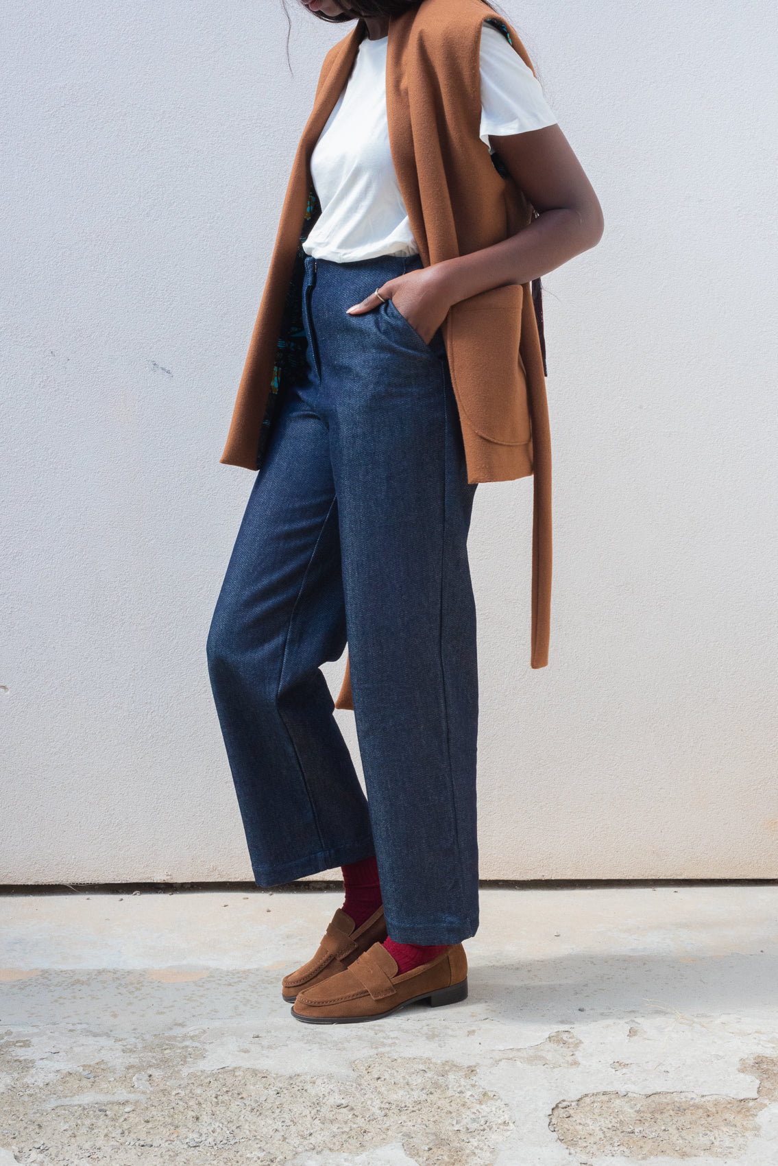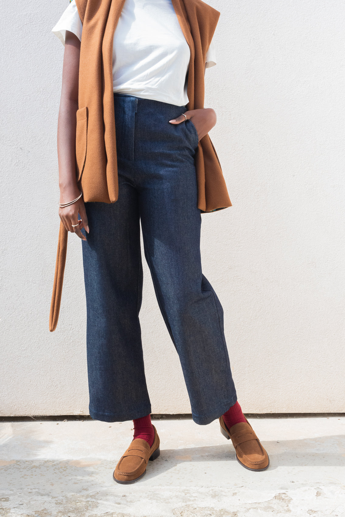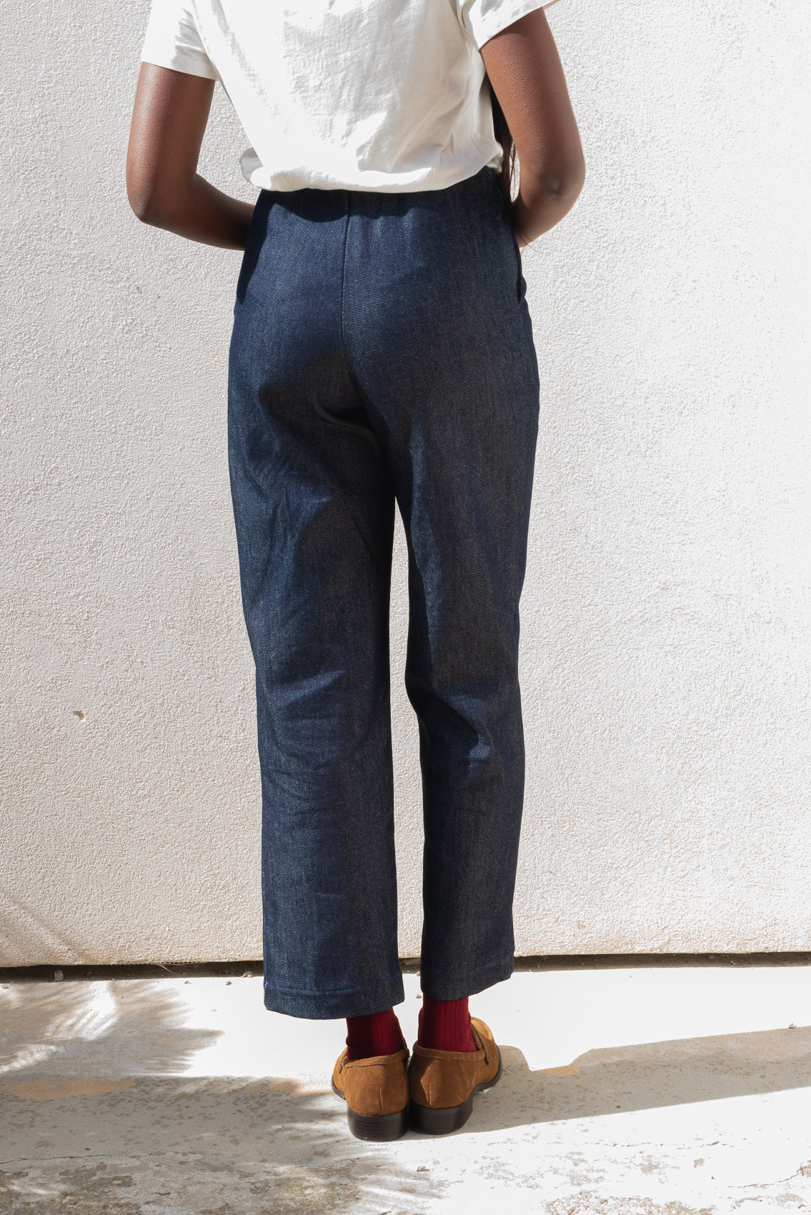Il pantalone a vita alta in denim è caratterizzato da una gamba dritta e un taglio classico per un look slanciato. Le tasche sono profonde e foderate di Cotone Wax.