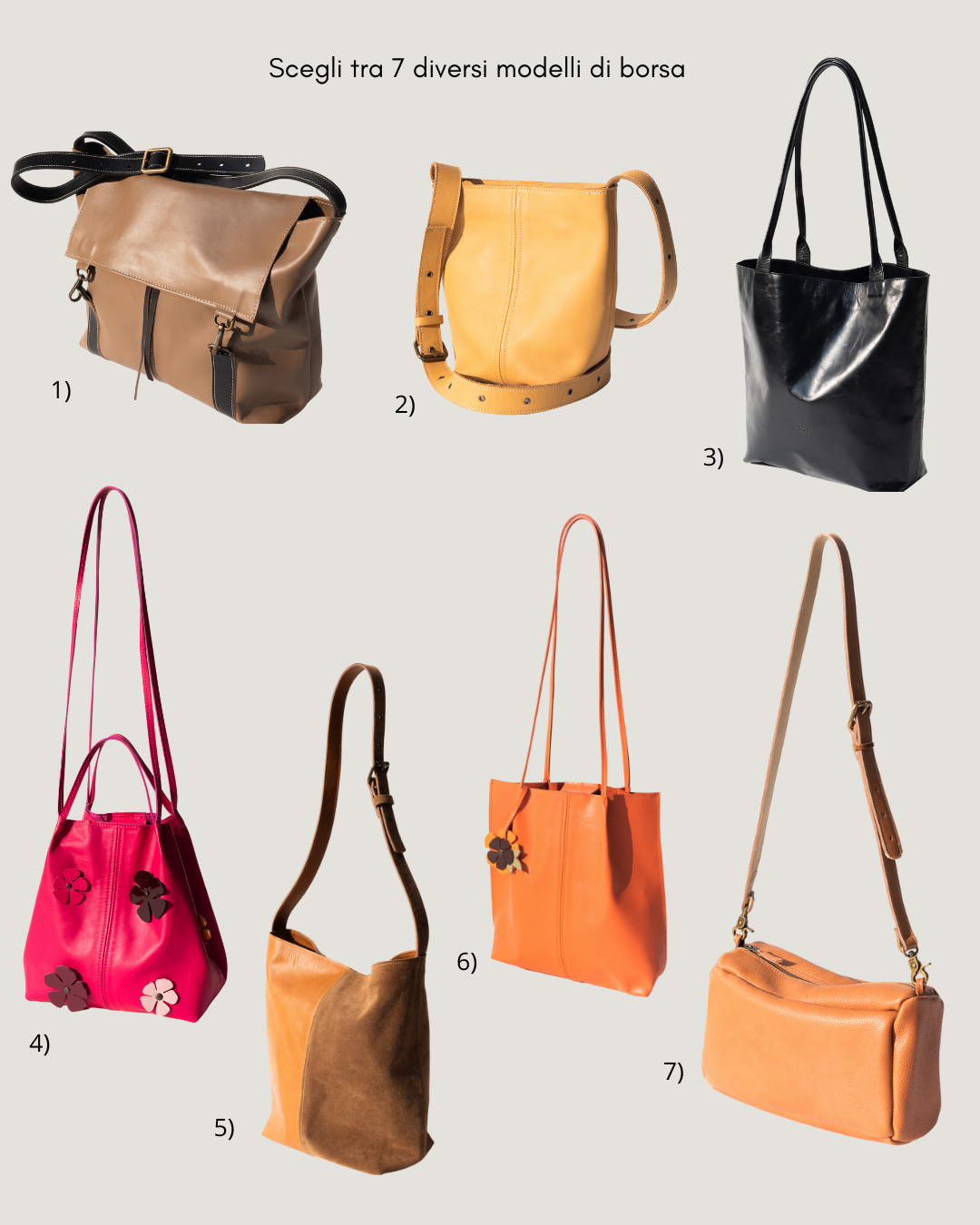 Questo workshop di pelletteria artigianale ho lo scopo di realizzare una borsa shopper da uomo o da donna. È possibile scegliere tra 7 diversi modelli di borse.